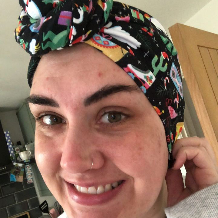 This trendy turban can be worn with either a prominent front knot or can be worn as a twisted turban look. I wanted to design a more on trend turban for my younger more fashionable turbanistas. It’s a great design that fits low at the nape of the neck & then the front can either be twisted into a knot or you can twist it a couple of times and pull the front sections around to the back of the head to create a cool twisted turban look. It is really versatile giving two great looks. The cotton fabric should keep you the perfect temperature whether you are sitting in front of a warm fire or out doing your Christmas shopping.